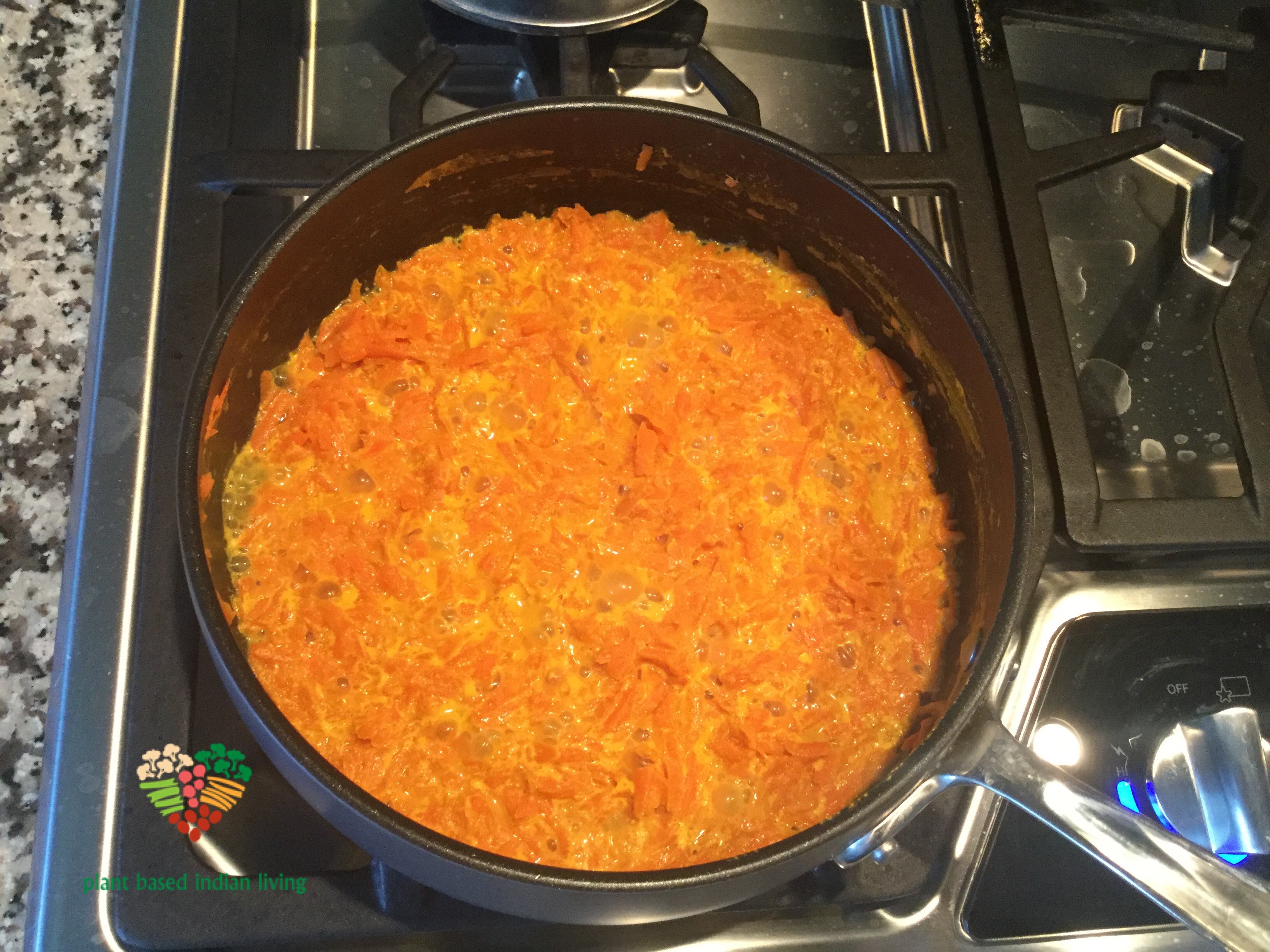 4. Cook the grated carrots until the milk evaporates. (see pictures)