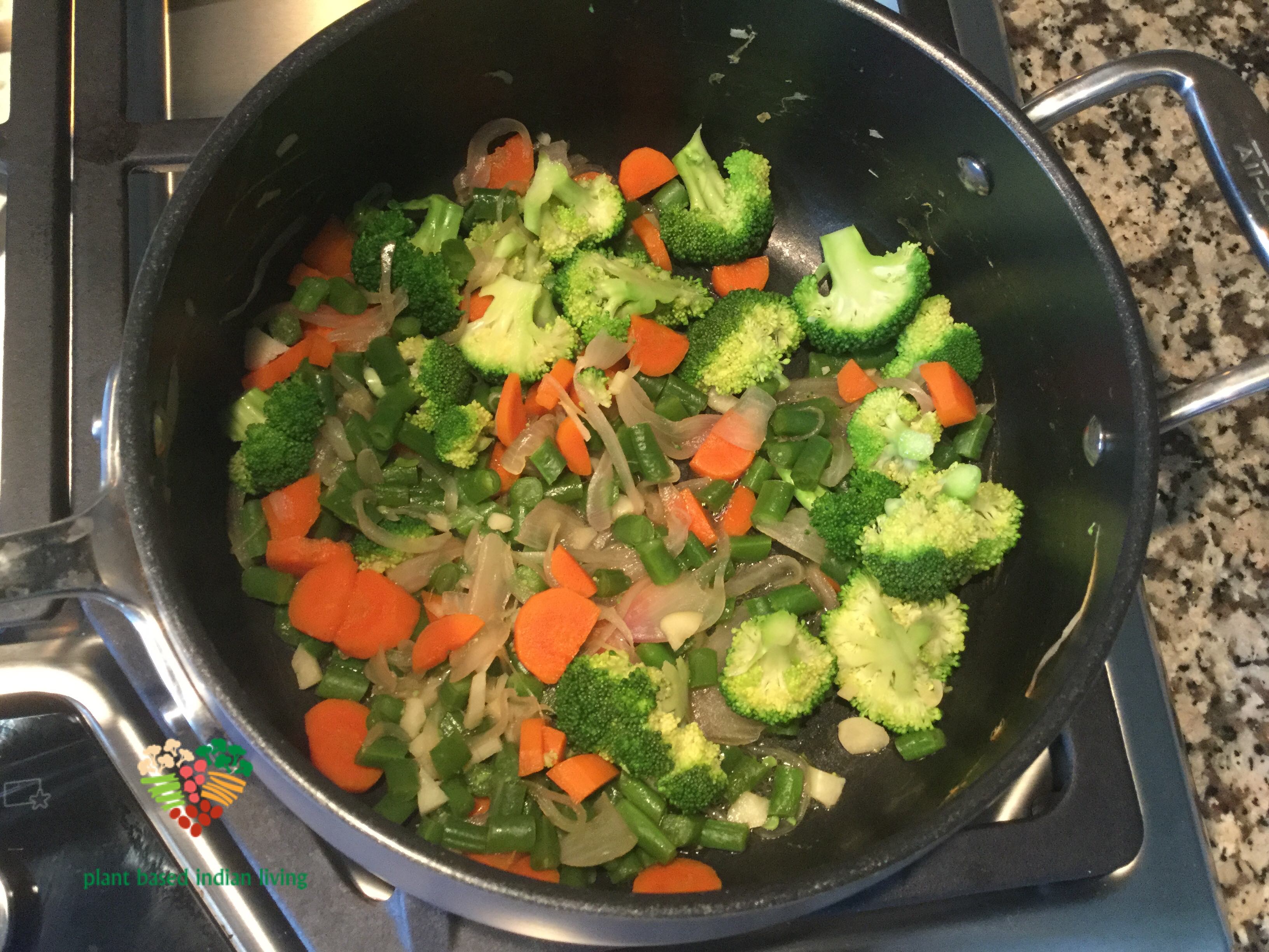 4. Add the green beans and carrots. It takes a little extra time to cook (I like my vegetables crunchy)