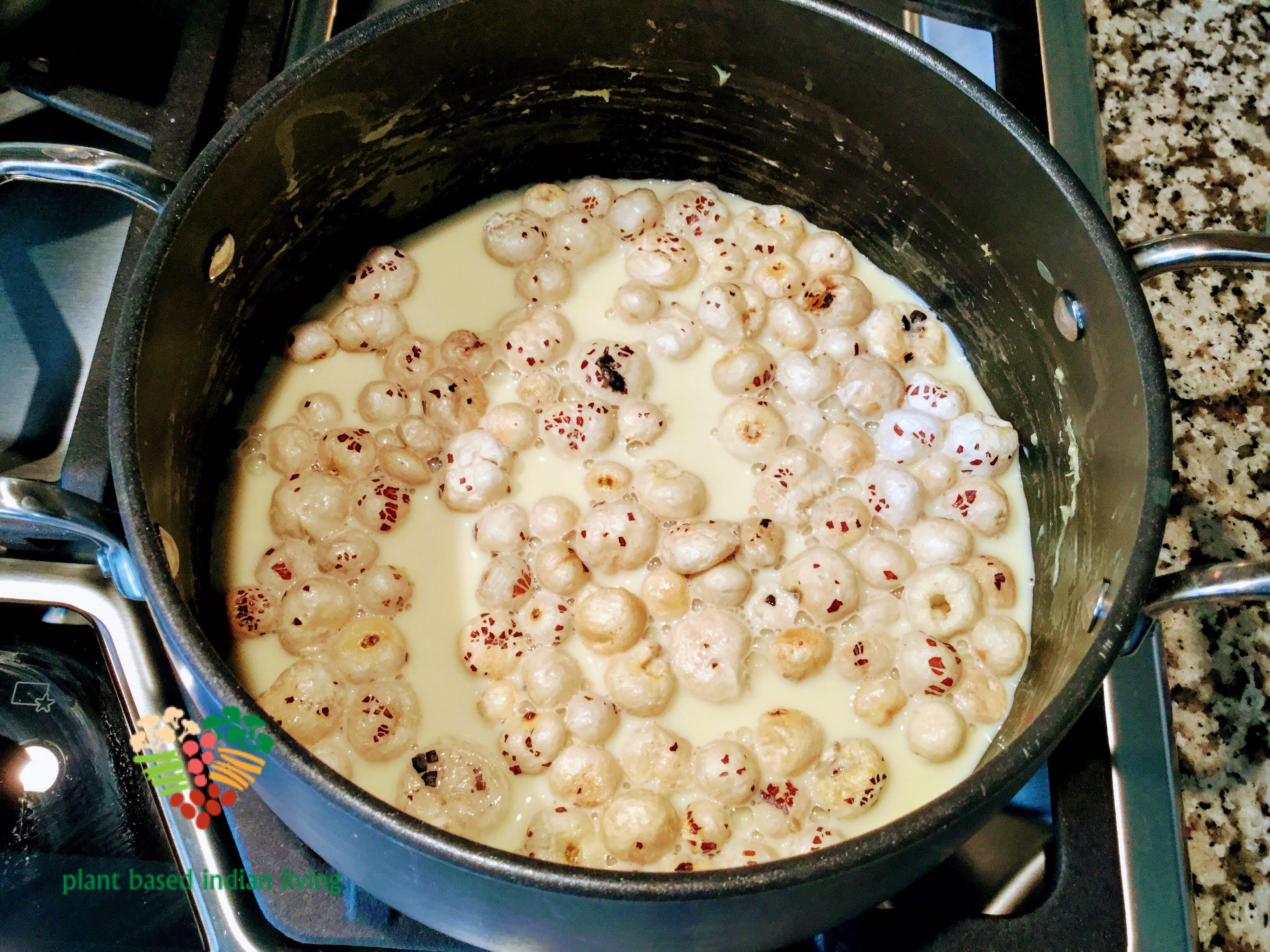 Like any tradition or festival in the world, dessert at the end of meal is as significantly important as anything else in the meal. This lifestyle has surely encouraged the creative side of us so I thought is making Makhana Kheer or Lotus Seed Pudding. The seed is mostly available in Indian Stores and is rich in Protein, B Vitamins and dietary minerals.