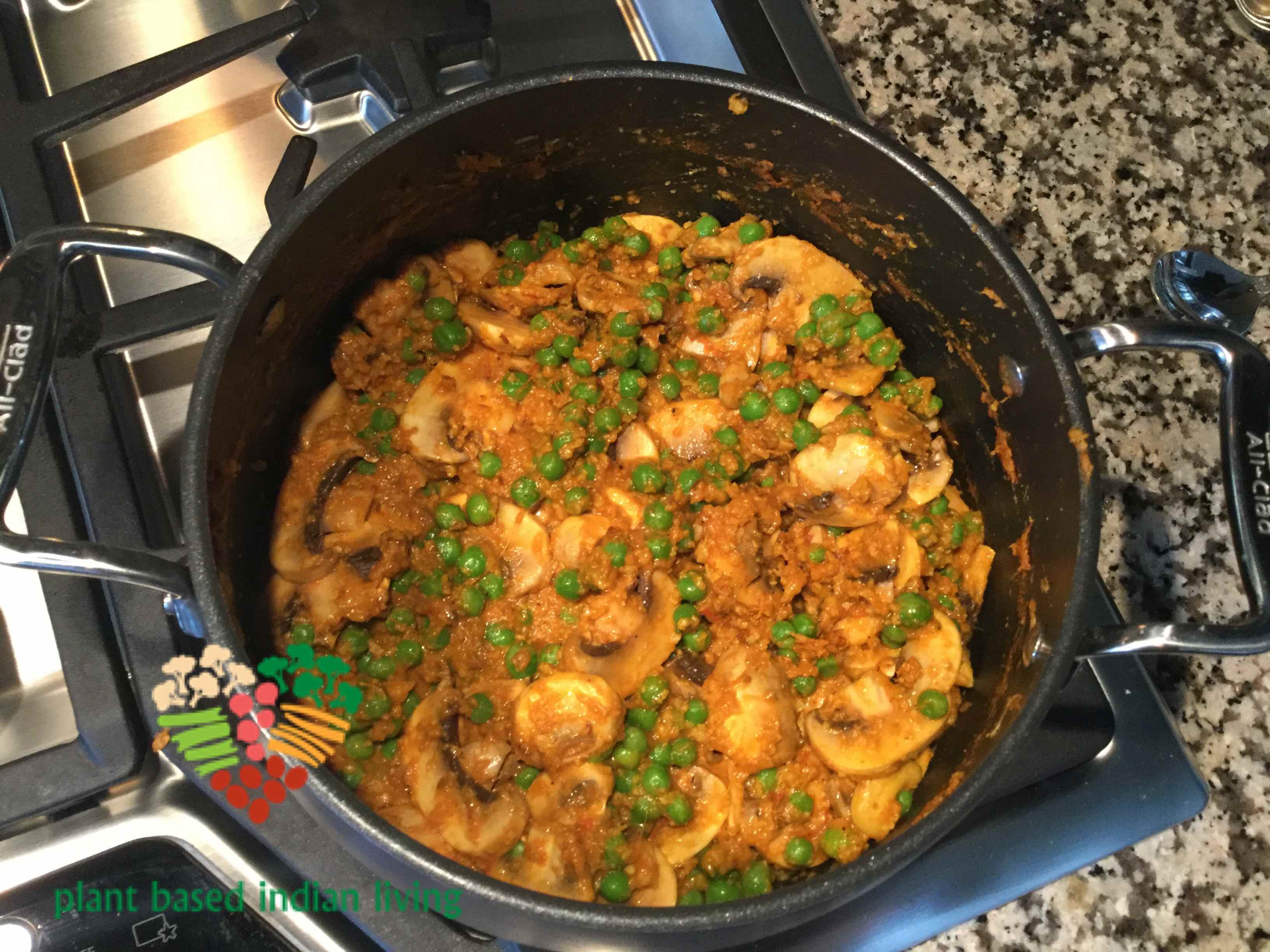Matar Mushroom or Mushroom with Peas is a semi-dry delicious dish with flavor bursting Indian spices. Mushrooms are a great source of protein and fibre along with a source of Vitamin B and Antioxidants. Peas on the other hand are a low calorie vegetable with plenty of antioxidants.