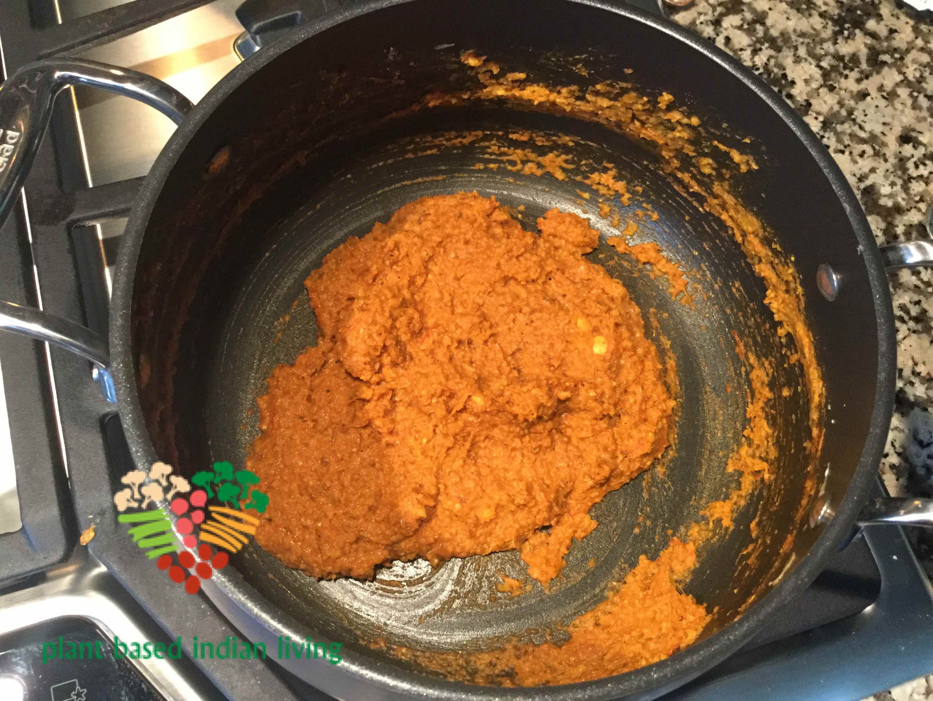 10. Add Kashmiri red chili to the purée. This provides color but is not necessary. Stir for 1 minute.