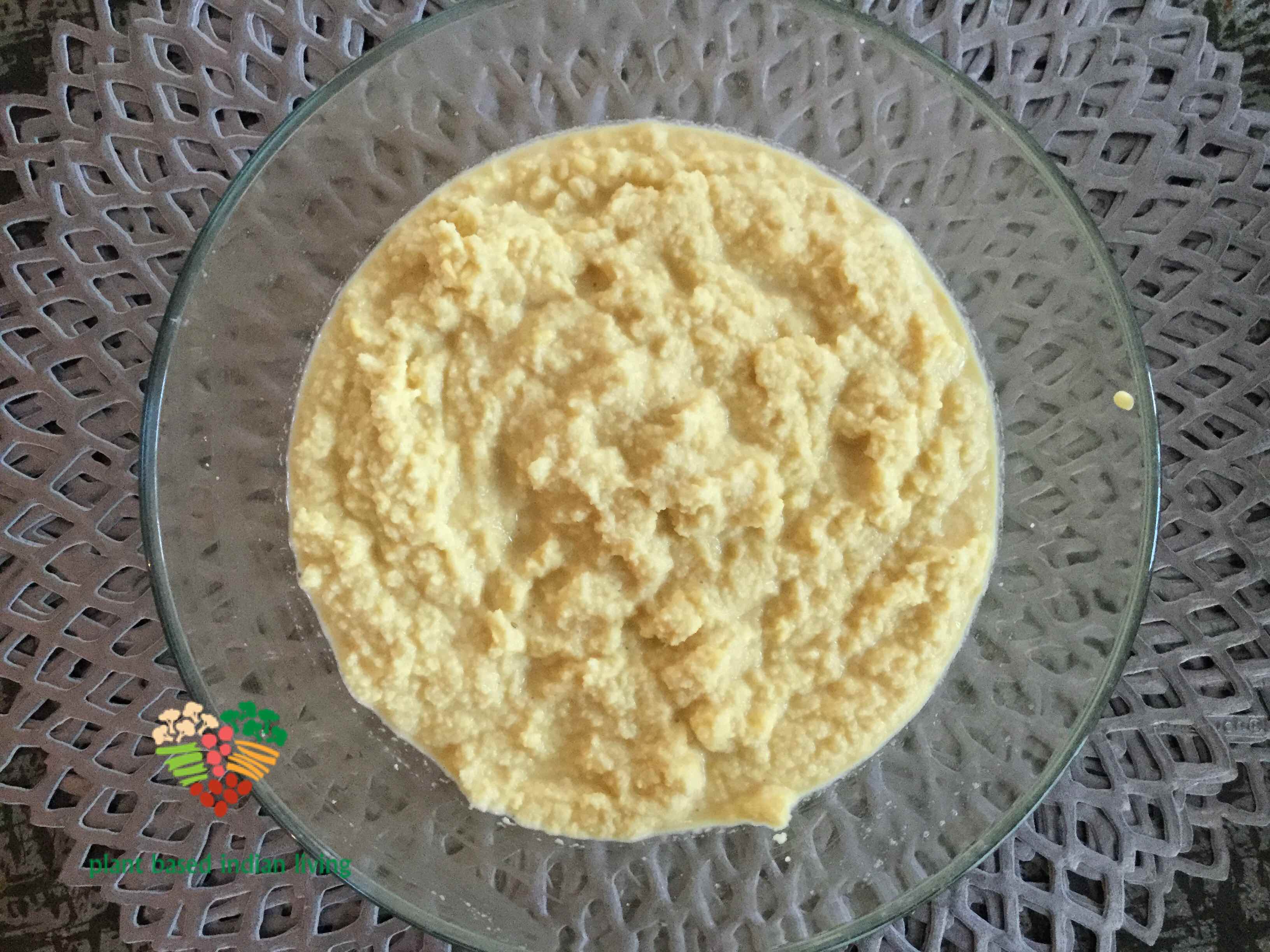 1. In a blender jar, add soaked dal (drained) and ginger. Try to make a smooth batter.