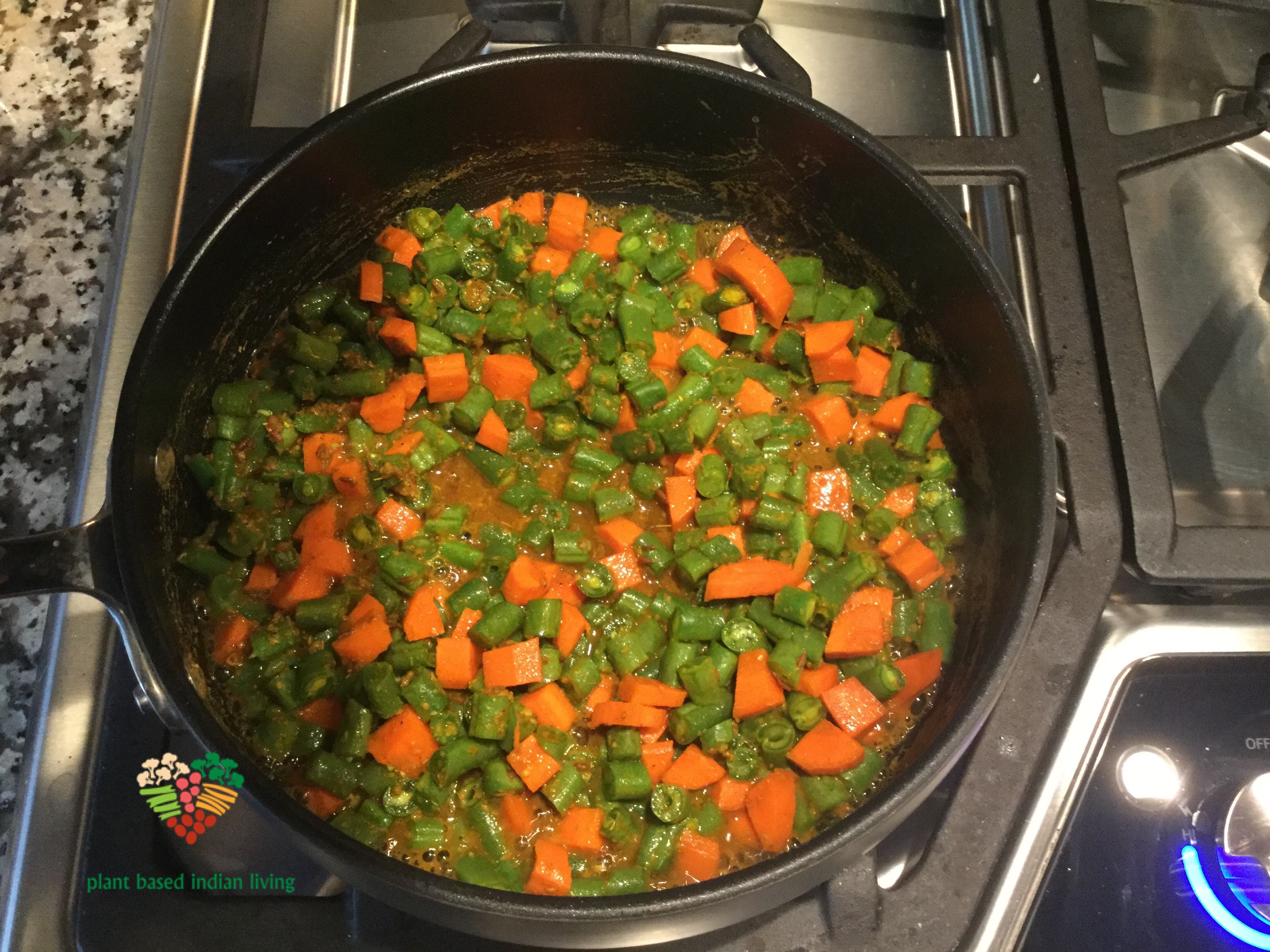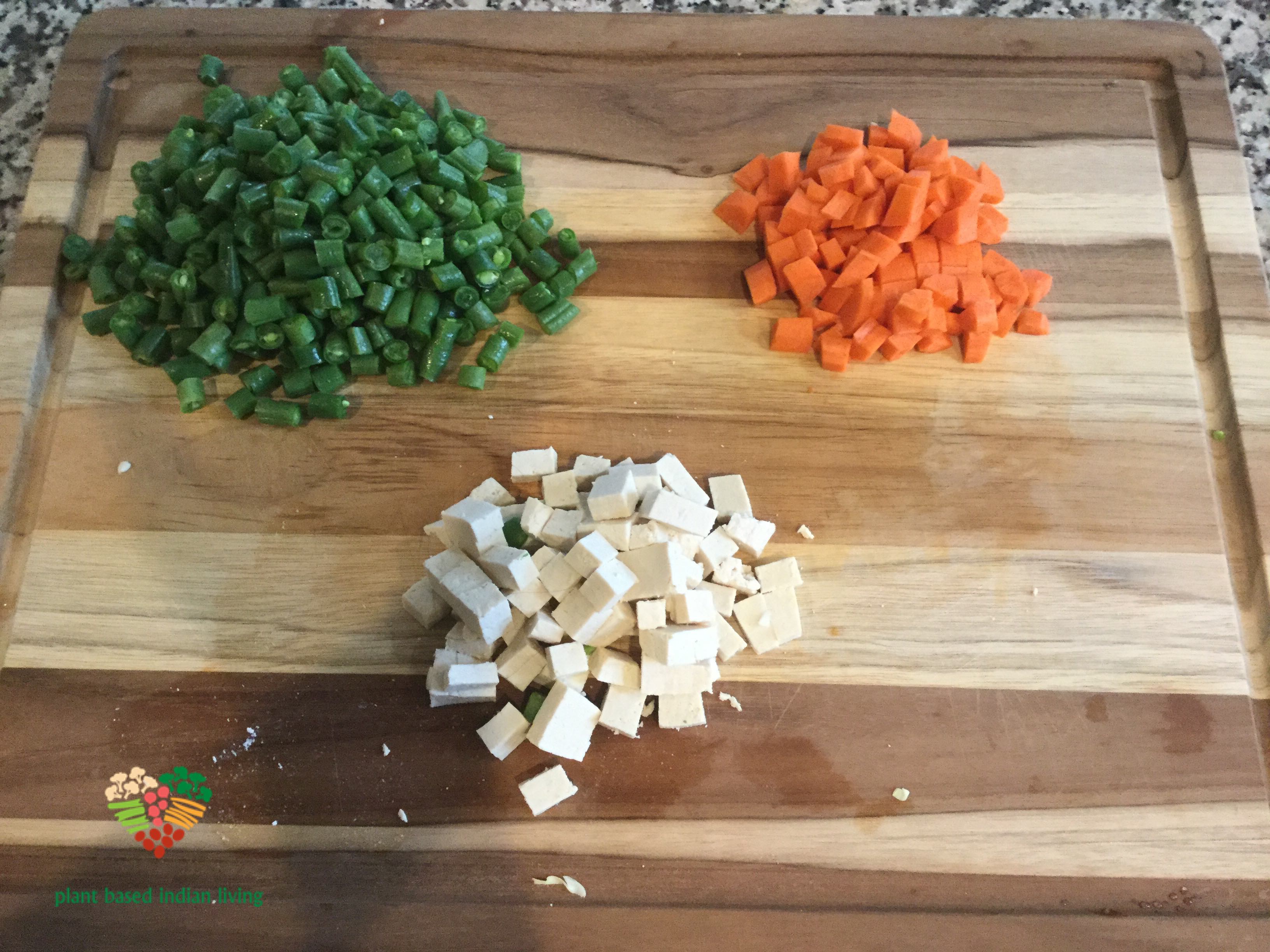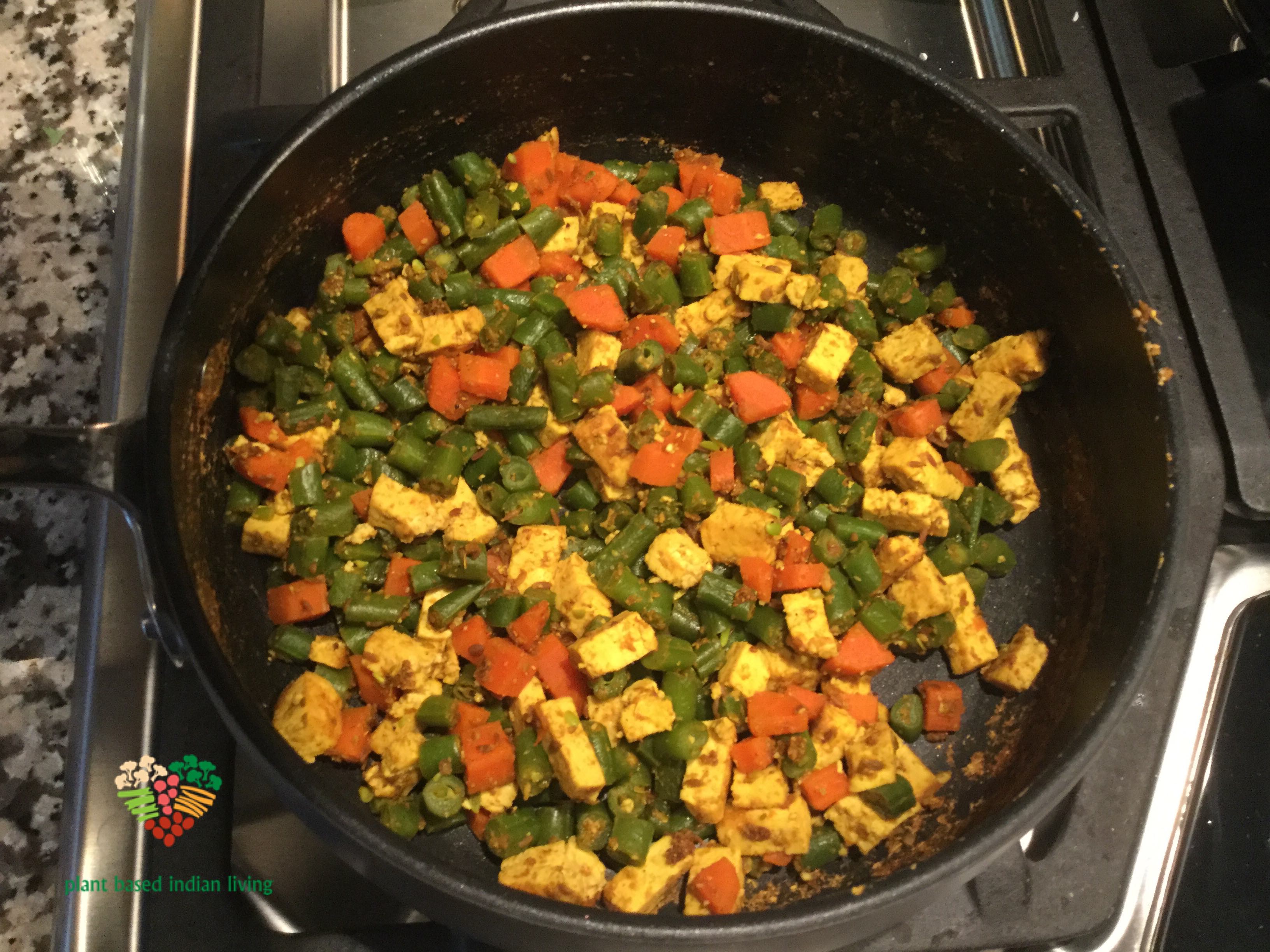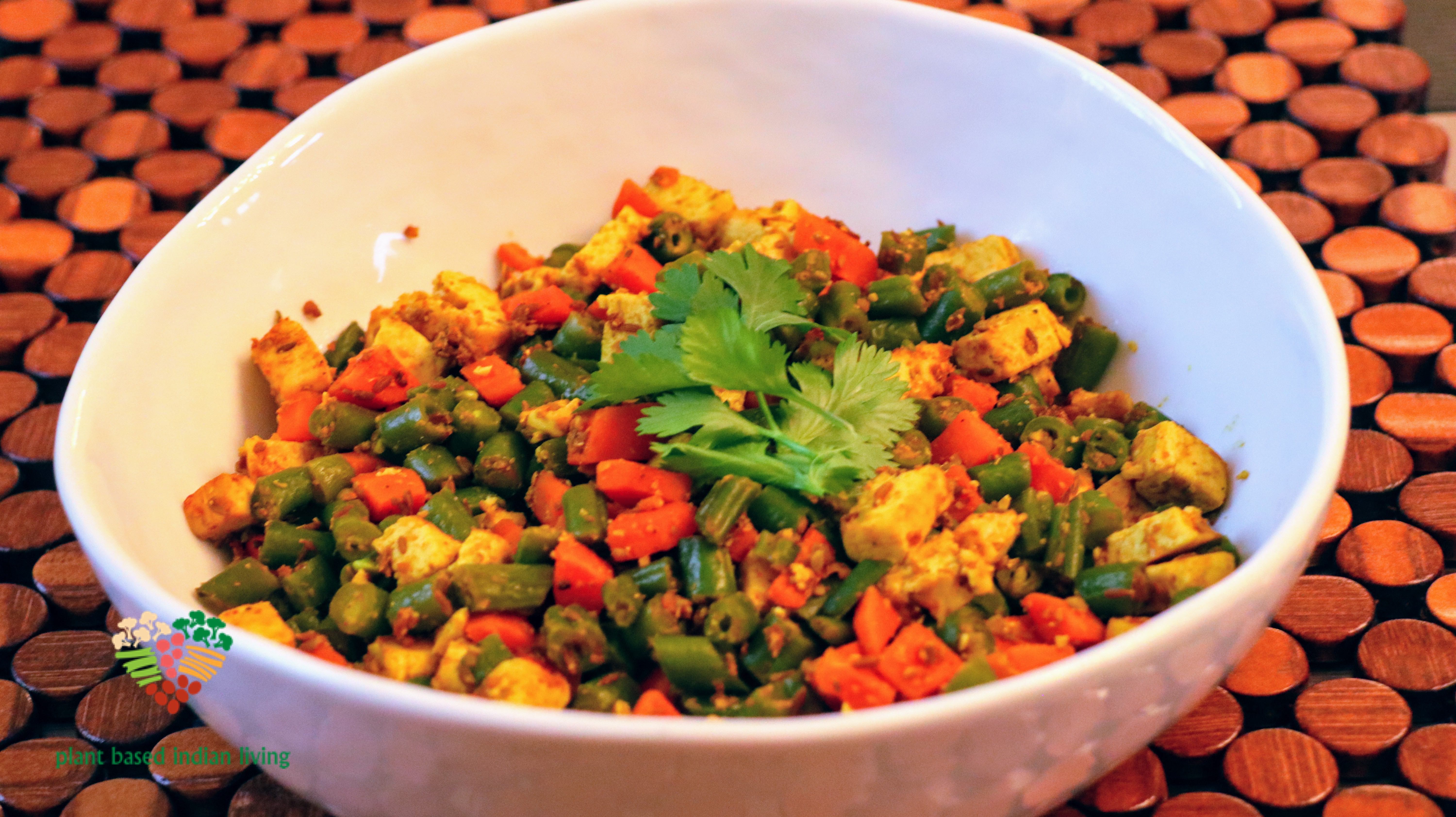 What do you do when you have green beans, carrots and pressed tofu in your fridge? You cook them. Cook these bright colorful vegetables with tofu ,and add flavors of Indian spices, to create an incredibly tasty dish.