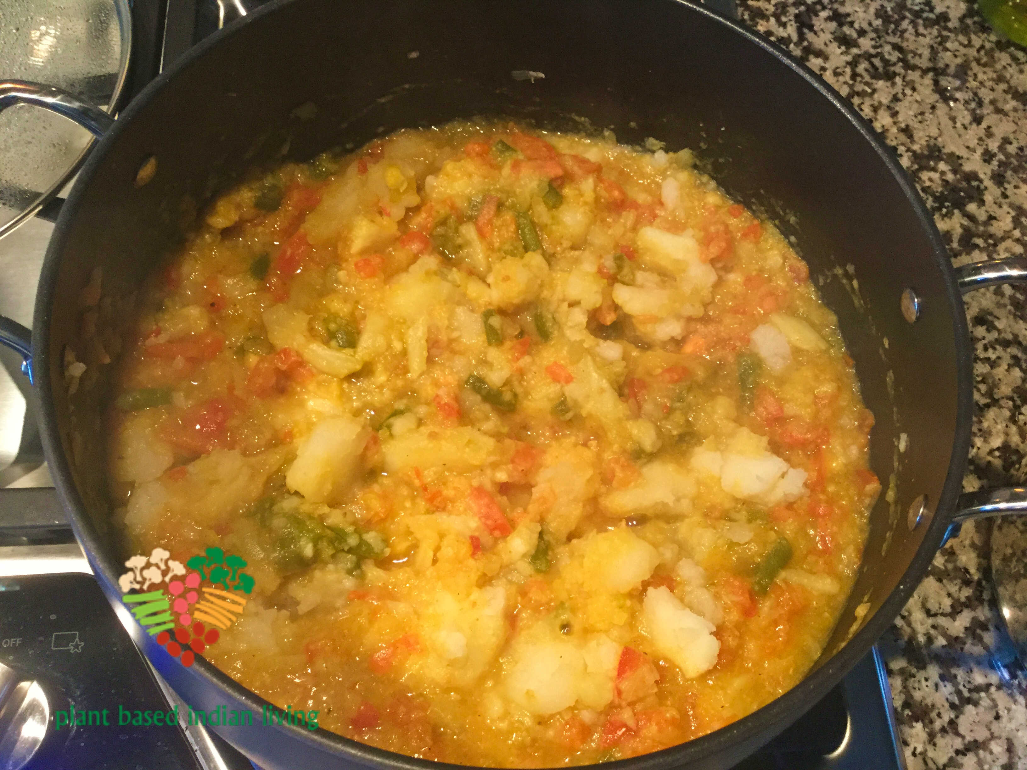 7. Add potatoes and pav bhaji masala. Stir for 4-5 mins.